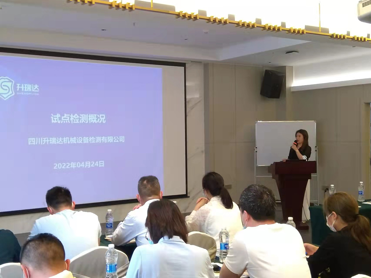 ? ? ? 四川升瑞達機械設(shè)備檢測有限公司是首家通過重慶市市場監(jiān)管局確認并首家開展試點檢測的單位。在本次會議上,公司總經(jīng)理陳亞麗向參會人員做了公司概況簡介和試點工作報告,并對于試點檢測工作進行了詳細的介紹。