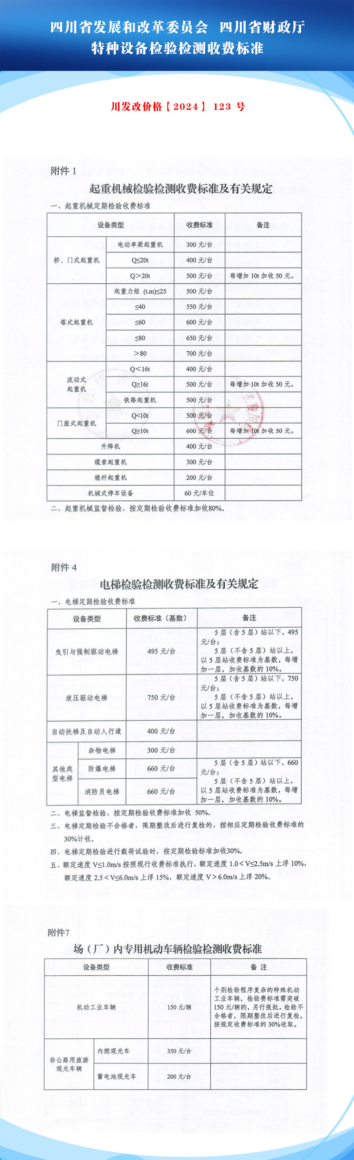 關(guān)于特種設(shè)備檢驗(yàn)檢測收費(fèi)標(biāo)準(zhǔn)的通知